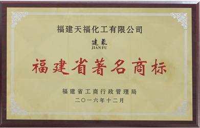 公司生產的“建氟牌”系列產品,品質優良,被評為“福建省著名商標”。